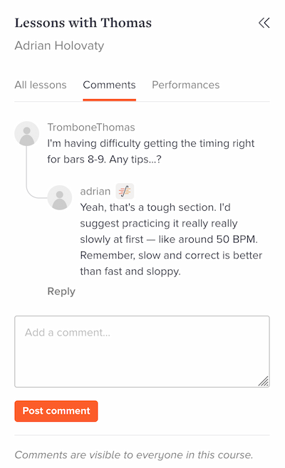 May 13, 2021We’ve added the ability to have comment threads within any Soundslice course. -