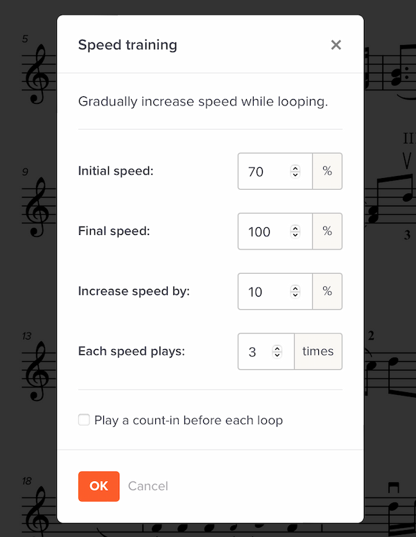 February 10, 2022This new feature lets you automatically increase playback speed each time through a loop — great for practicing. -