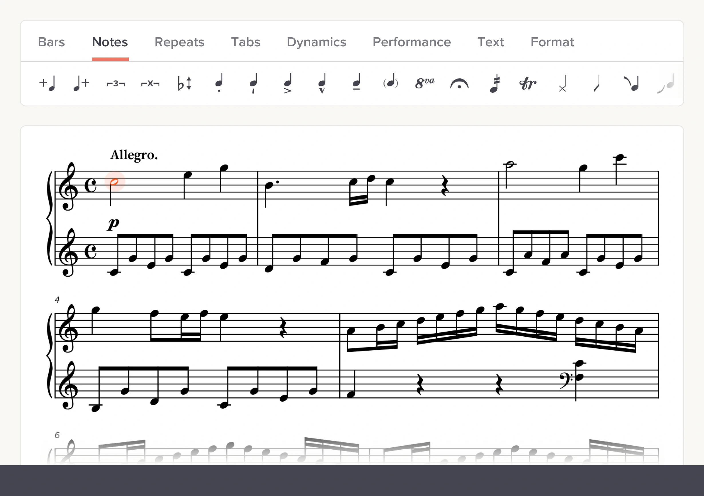 Create sheet music and tablature in a simple, beautiful, web-based interface. Free.