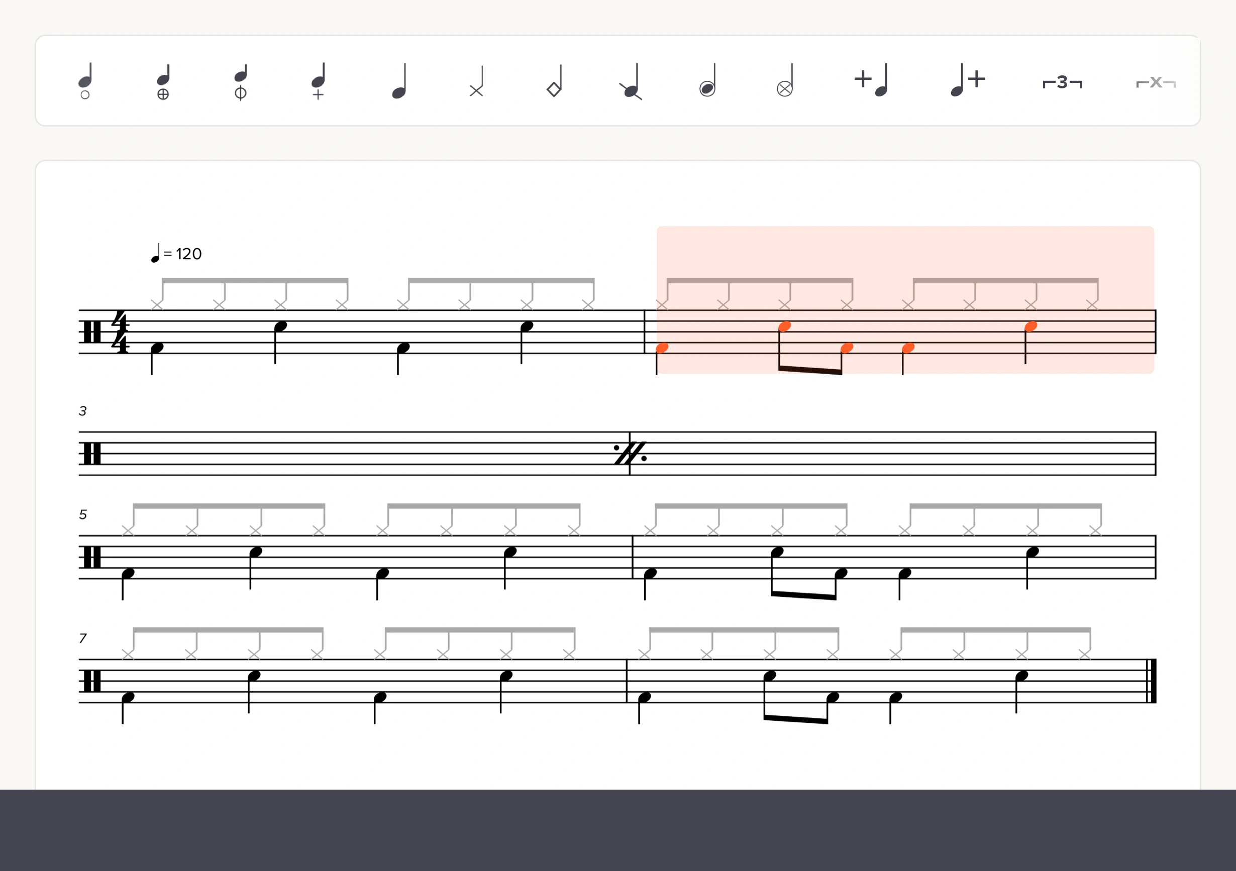 Percussion notation can vary from musician to musician. With Soundslice, you can create a custom percussion map to ensure drums are notated — and played back — exactly as you’d like.