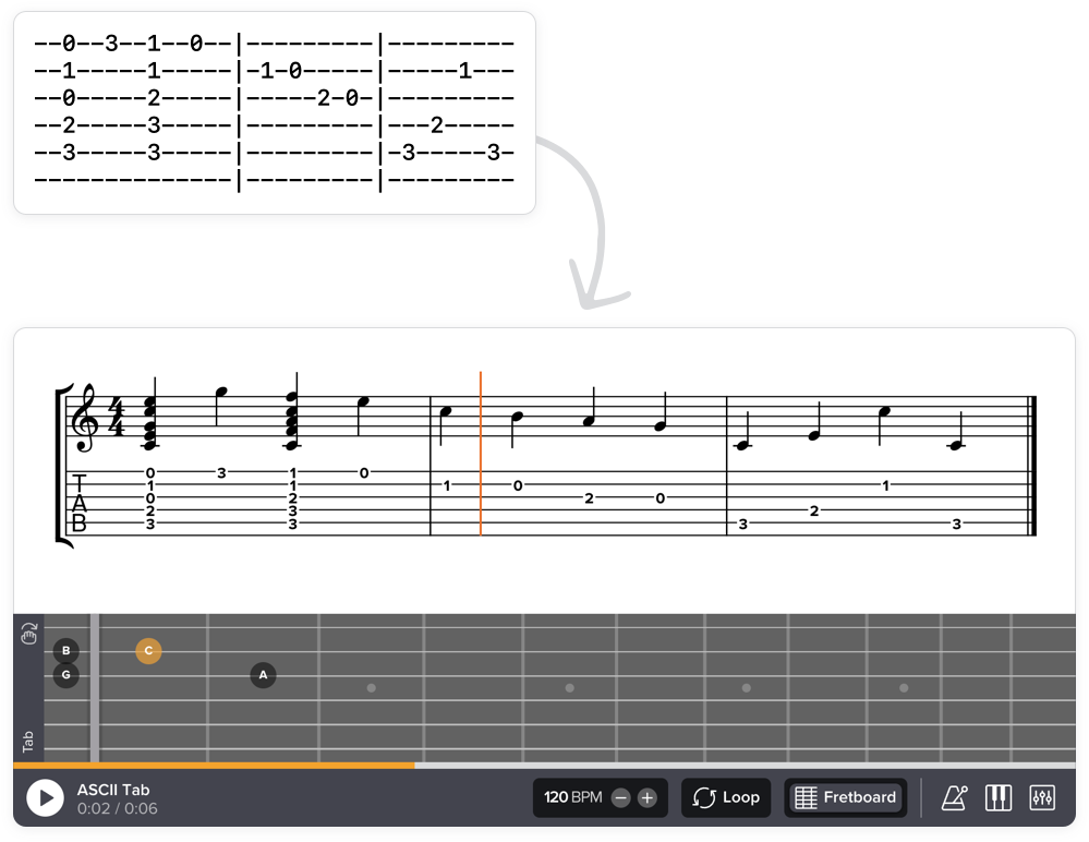 Hear how it sounds. Turn your tab into something you can hear and practice.