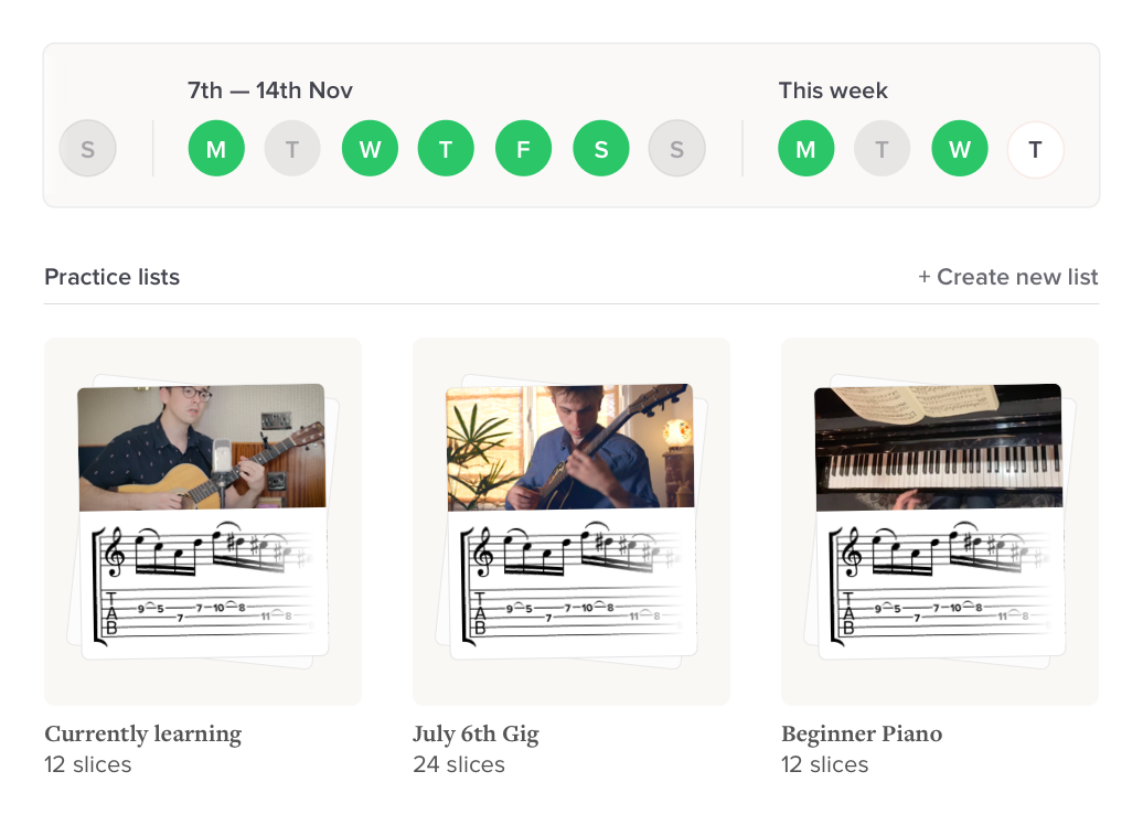 Write private notes. Save notes directly in context of the music you’re practicing. Leave thoughts and reflections for your Future Self. Or just use it to track what BPM you’re at.