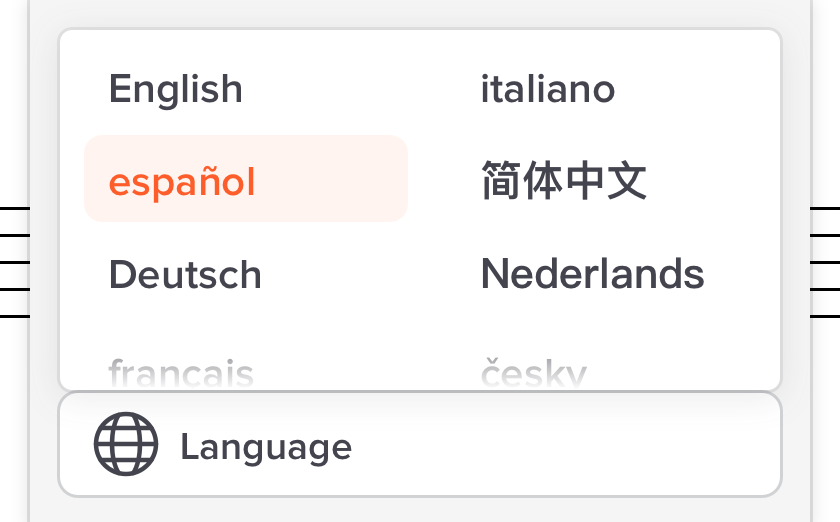 Change the player’s language in the Settings menu. We support several languages; let us know if you’d like to help translate into yours.