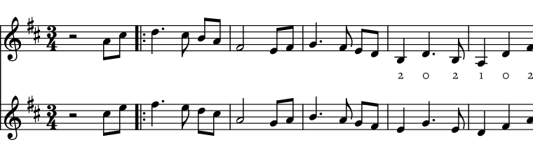 | Ashokan Farewell, advanced (with no grace notes) |