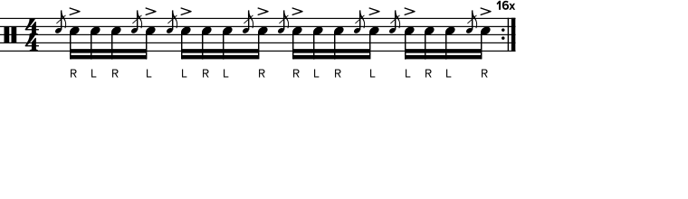 Hybrid rudiments are part of fundamentals. It is synced with automated sheet music and follows your tempo too.