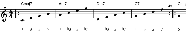 In this course you will be provided with all chord tones and scales you need for the I-VI-II-V chord progression in all 12 keys. You can choose between C-, Bb- and Eb-Intruments in the audio section.