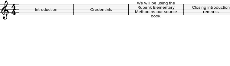 - Confidently play in 2/4, 3/4, 4/4, 6/8, and 3/8 time signatures