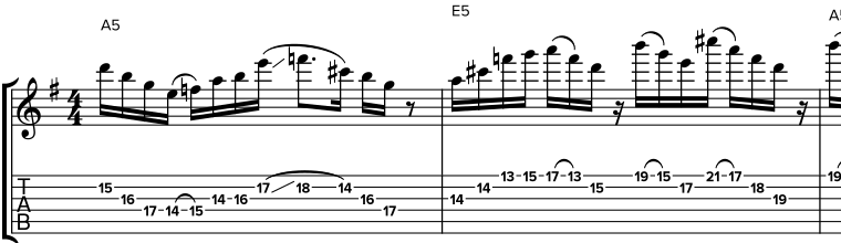 One featured lick is based around the E Dorian ♭2 scale (aka D melodic minor), and I use arpeggios built from that mode to create a more angular, exotic sound. The tension this creates resolves satisfyingly into the E blues scale—back to familiar ground, but with some added flavor. You can hear the shift clearly in the synced audio and video slices included in the bundle.