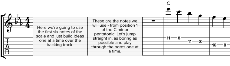 Throughout this course we are going to build our knowledge and experience one thing at a time, almost from the ground up. What do I mean by "almost"? Well, this isn't a beginner course. It's assumed you already have some experience with playing (at least) the minor pentatonic scale in one position and you don't need an explanation of how to use common techniques like vibrato, string bending, hammer-ons, pull-offs etc (although some basics will be included). You don't have to have already mastered these techniques but you need to know what they are because this course isn't going into that sort of detail. Besides that, there are countless tutorials available all over Youtube if you need that kind of detail - repeating all of this in an intermediate course is unnecessary.