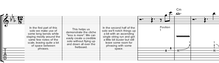 This course is a progressive workout packed with TABs, audio and examples that will take you out of the rut and show you various ways on how to play the pentatonic scales, minor, major and more, in the style of blues and rock that sounds more like a solo and less like a bunch of scale exercises strung together. This is not a video course, just text, TABS and audio examples that takes advantage of the incredible Soundslice system that allows us to follow along at our own pace and zoom into the TABs with precision detail.