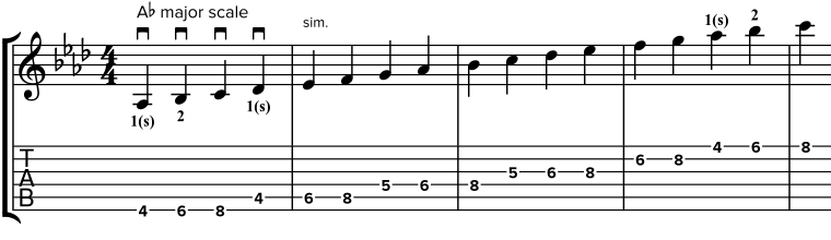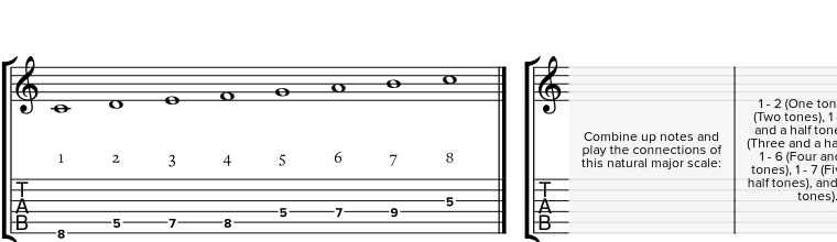 | Natural major scales in fifth position. |