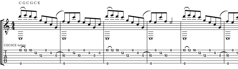This is a fun solo guitar piece in Open C tuning. The style is reminiscent of Bruce Cockburn, Let Kottke & other finger style guitarists. The picking combines elements of classical technique, 5- string banjo licks and acoustic guitar Travis picking.