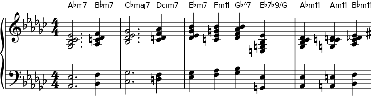 Though the examples are performed on piano, you could easily apply the chords and voice leading to other chordal instruments.