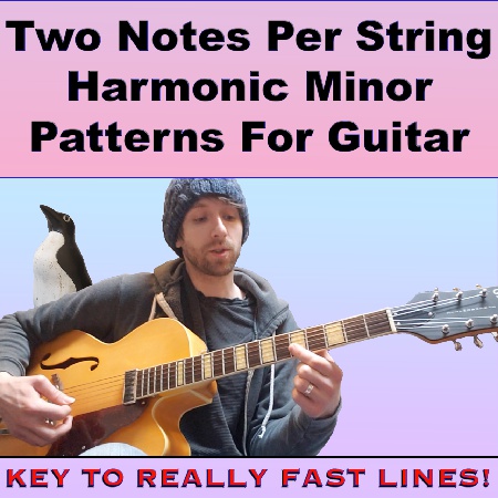 Two Notes Per String Harmonic Minor Patterns